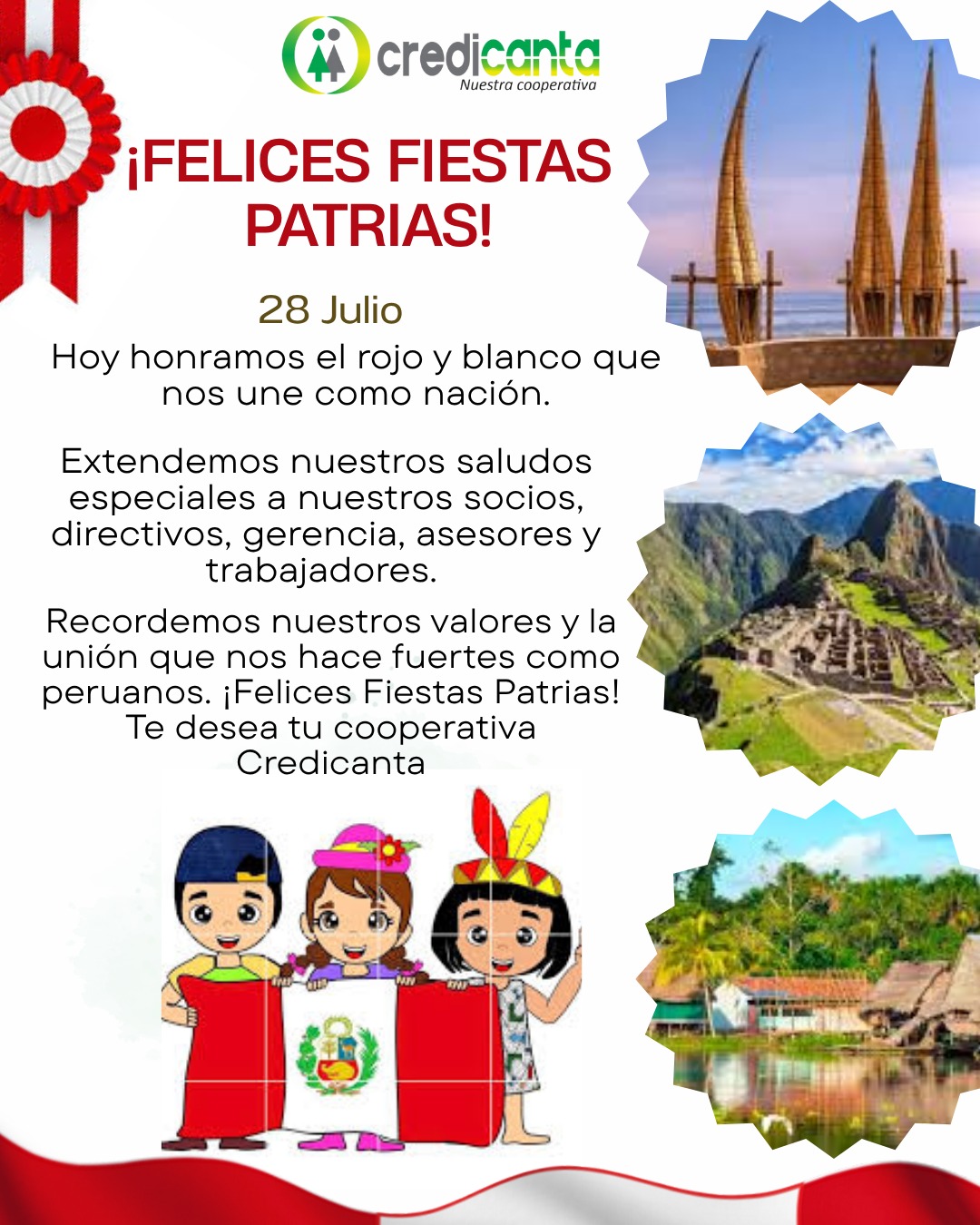 En esta fecha tan especial, Credicanta se une al orgullo de todos los peruanos por conmemorar un aniversario más de nuestra independencia.
